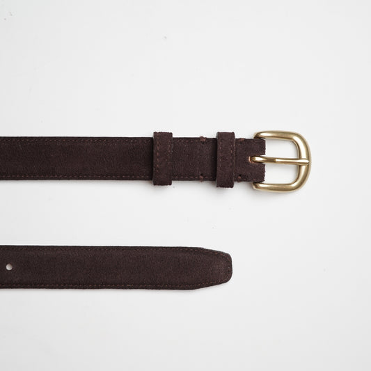 Contemp เข็มขัดหนังแท้ หนังกลับสีน้ำตาล หัวทองเหลือง กว้าง 1 นิ้ว