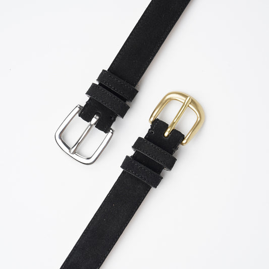 Contemp เข็มขัดหนังแท้ หนังกลับสีดำ กว้าง 1 นิ้ว