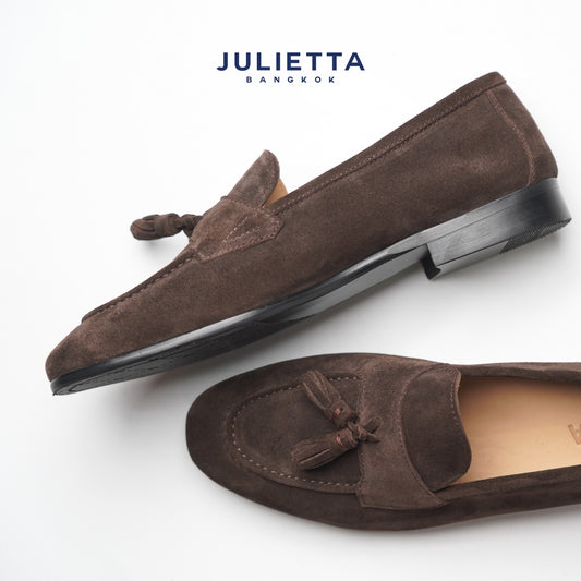 JULIETTA - Grand Tassel Loafer Suede : Brown (Unlined)